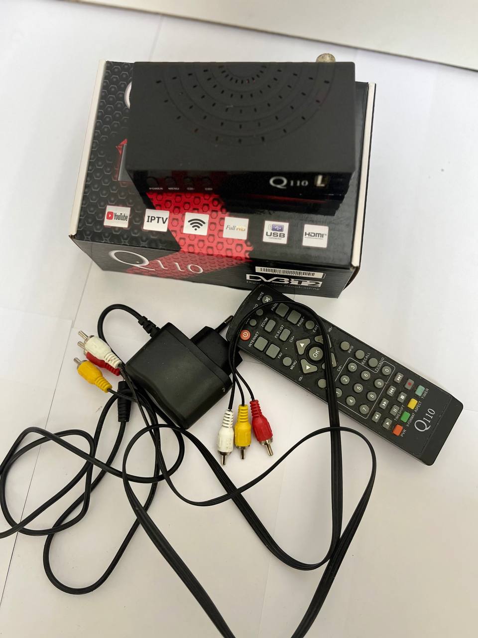 коробка,пульт,кабеля