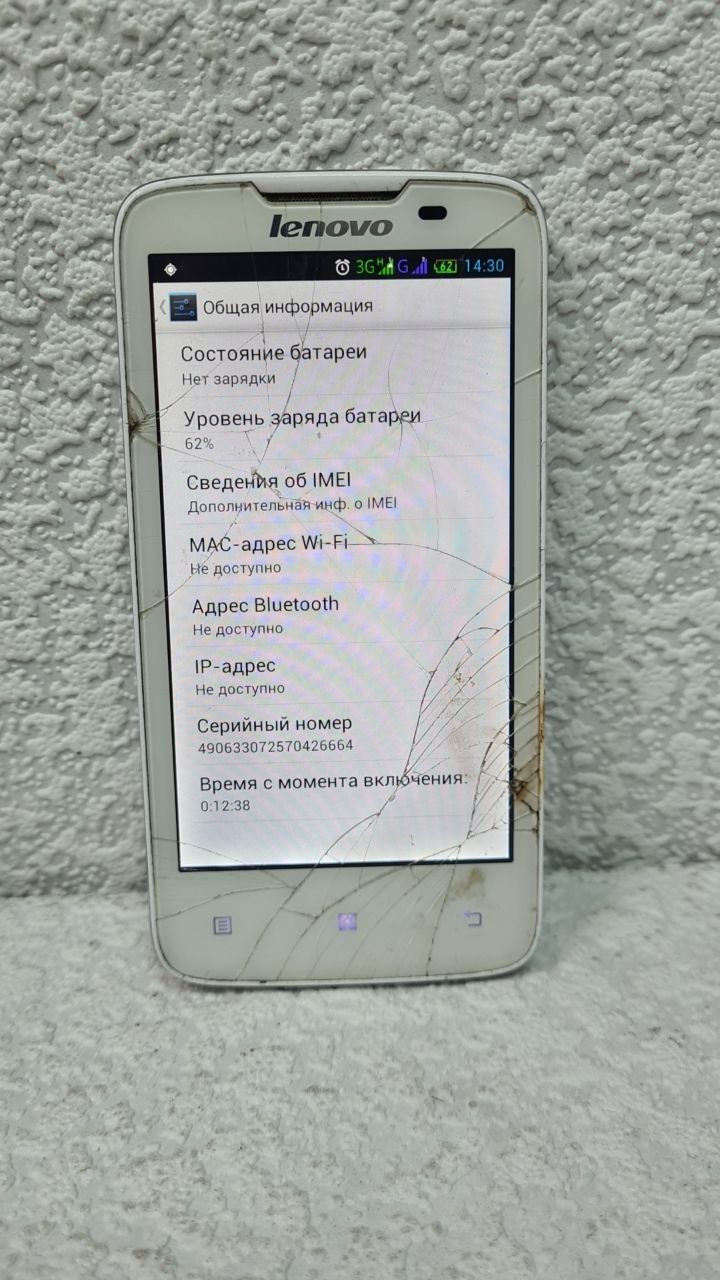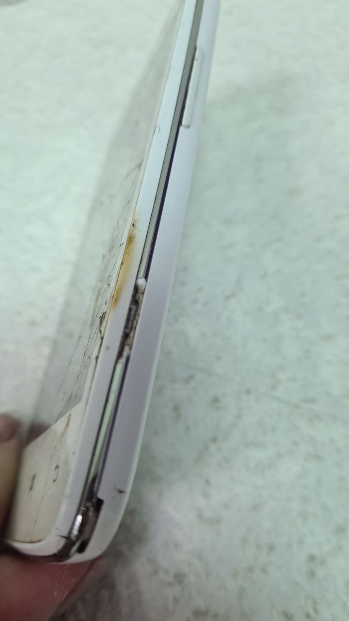 Битий екран, мертвих зон нема, є засвіти по краям екрана, сколи та подряпини на корпусі, батарея трохи вздута