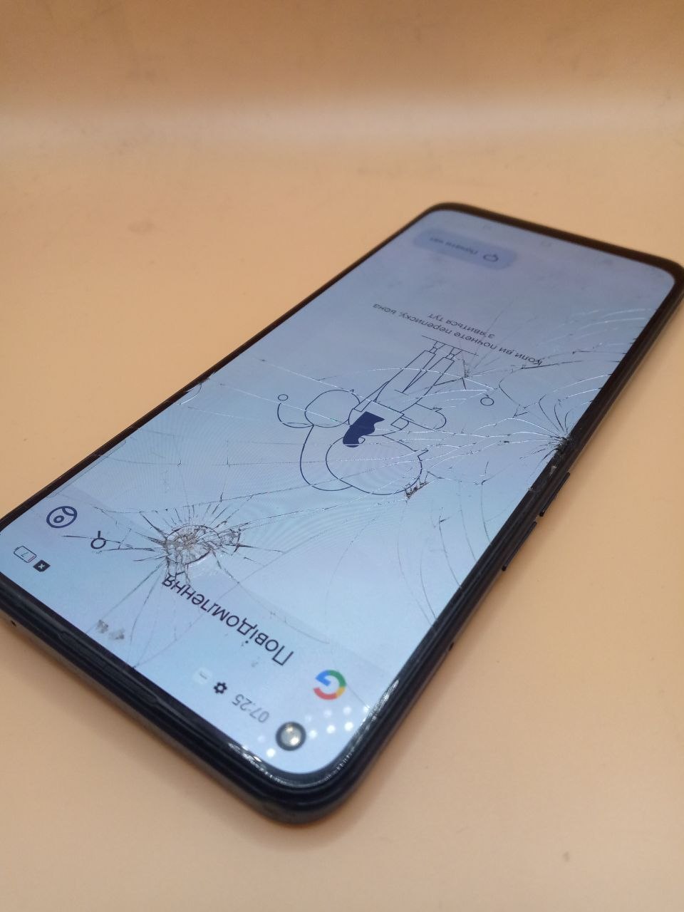 розбитий екран і скло камери
