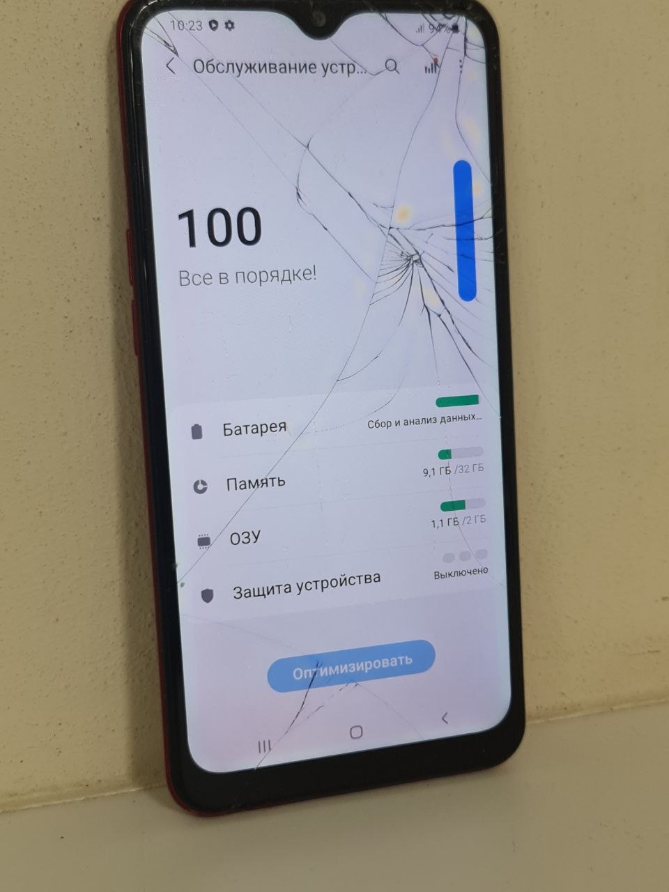 Сліди падіння по корпусу та склу ,плями по екрану,хрипить динамік, розбитий екран
