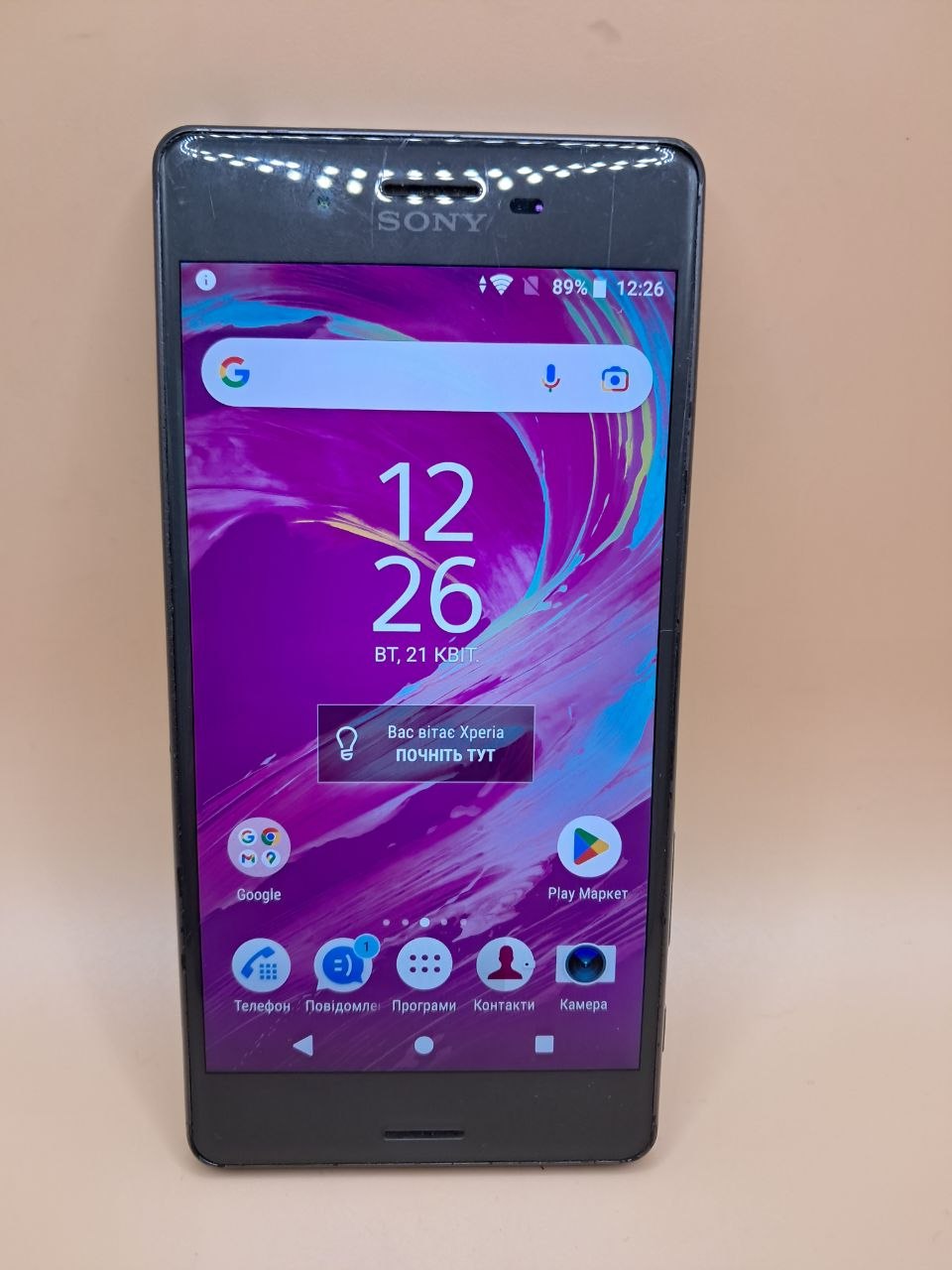 царапини на екрані, батерея слабка(не критично), вм'ятина на корпусі, плямка не екрані, екран розовить, немає української розкладки