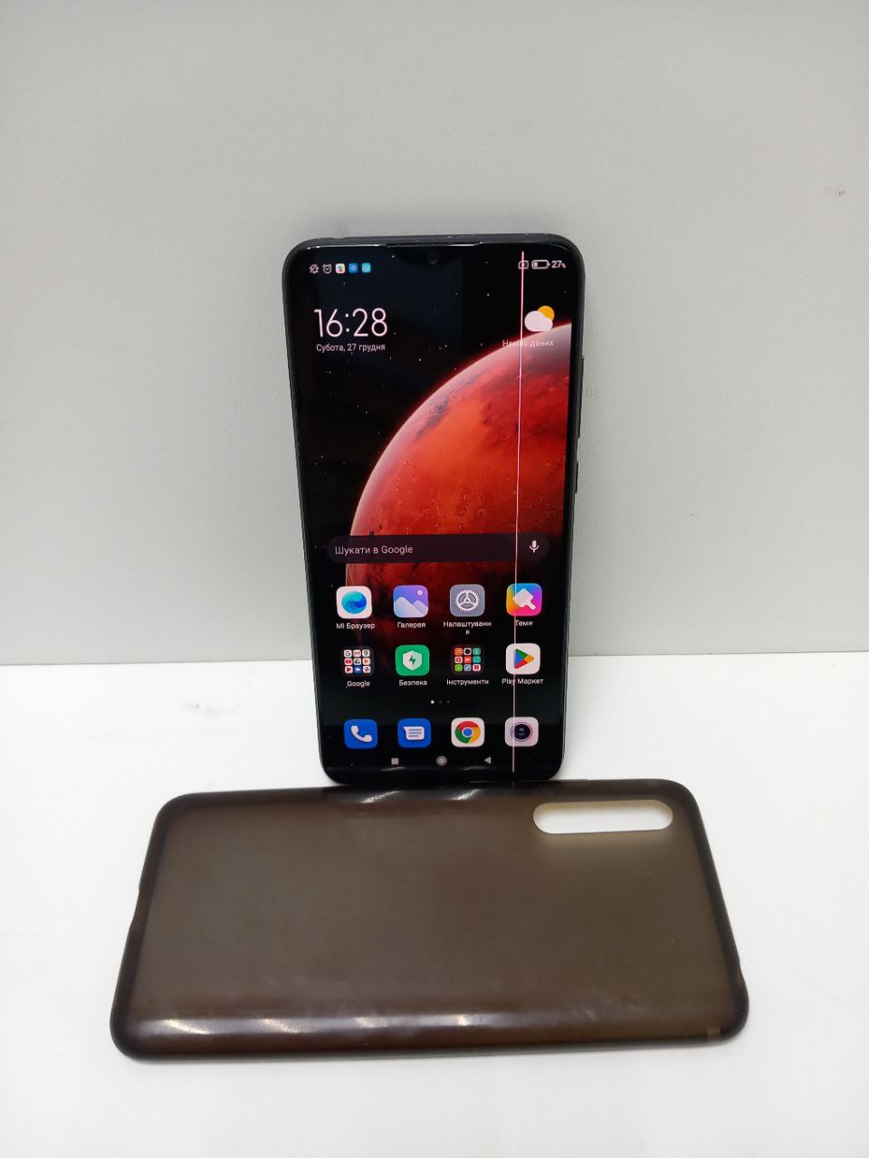 Тріщина ззаді на корпусі, на екрані вертикальна полоса, всі функції робочі