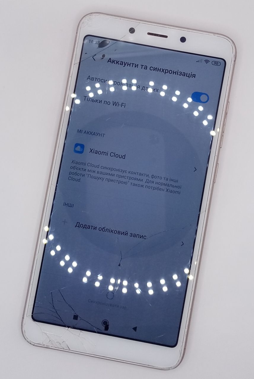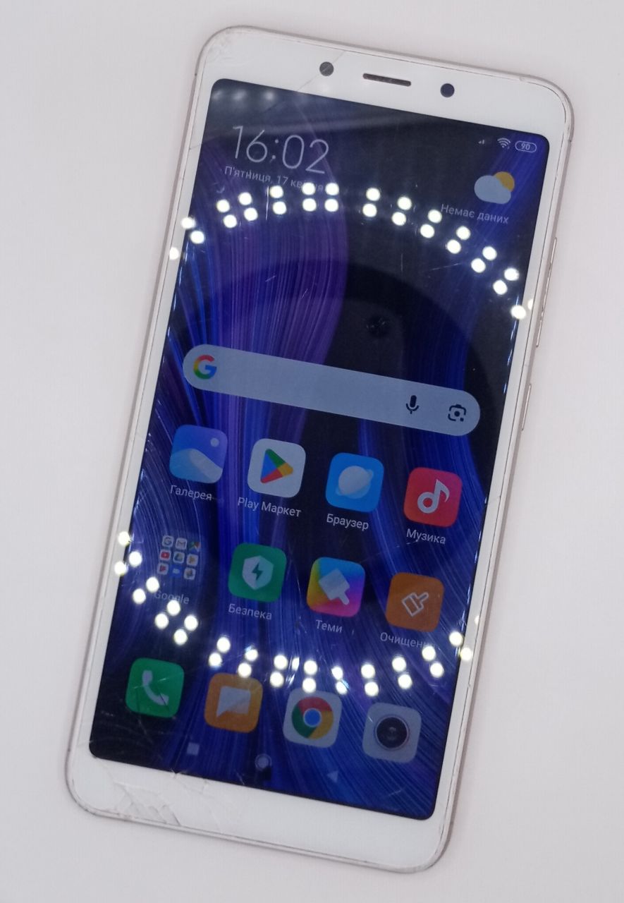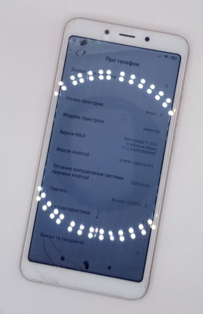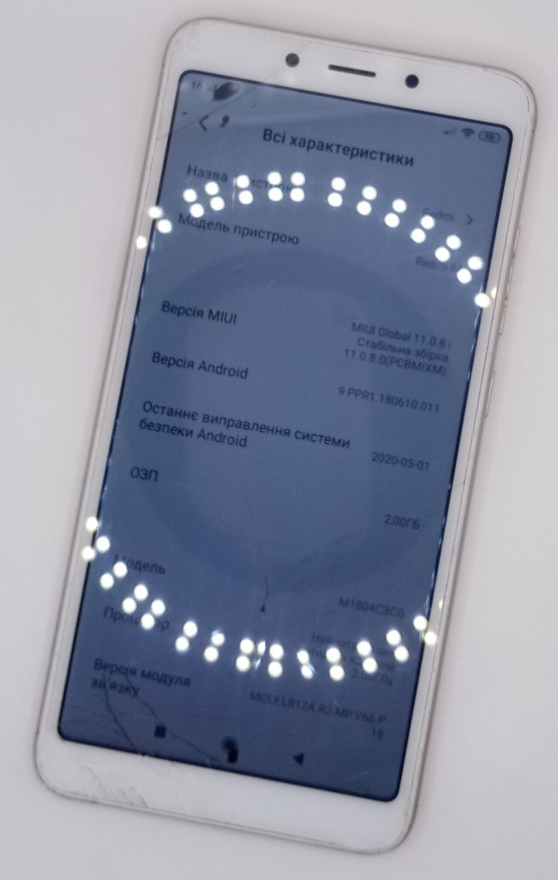 Некоректна робота кнопки живлення,відсутнє скло на камері, тріщини та чорні плями на екрані, по корпусу вмятини та подряпини, камери мутні.