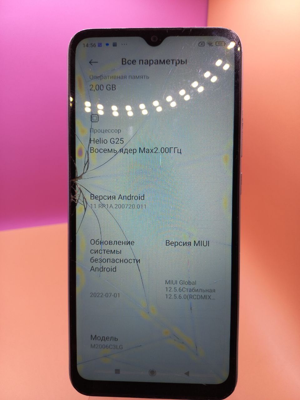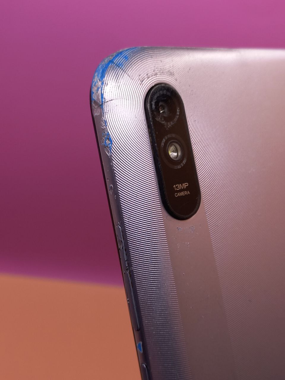 тріщини та сколи по екрану, відсутні шматки скла, жовті розводи, верхня частина корпусу відклеєна, відстає від екрану, надбитий пластик на слоті для сімкарт, пошарпаний корпус, є тріщини та сліди падіння, скол скла і тріщини на основній камері