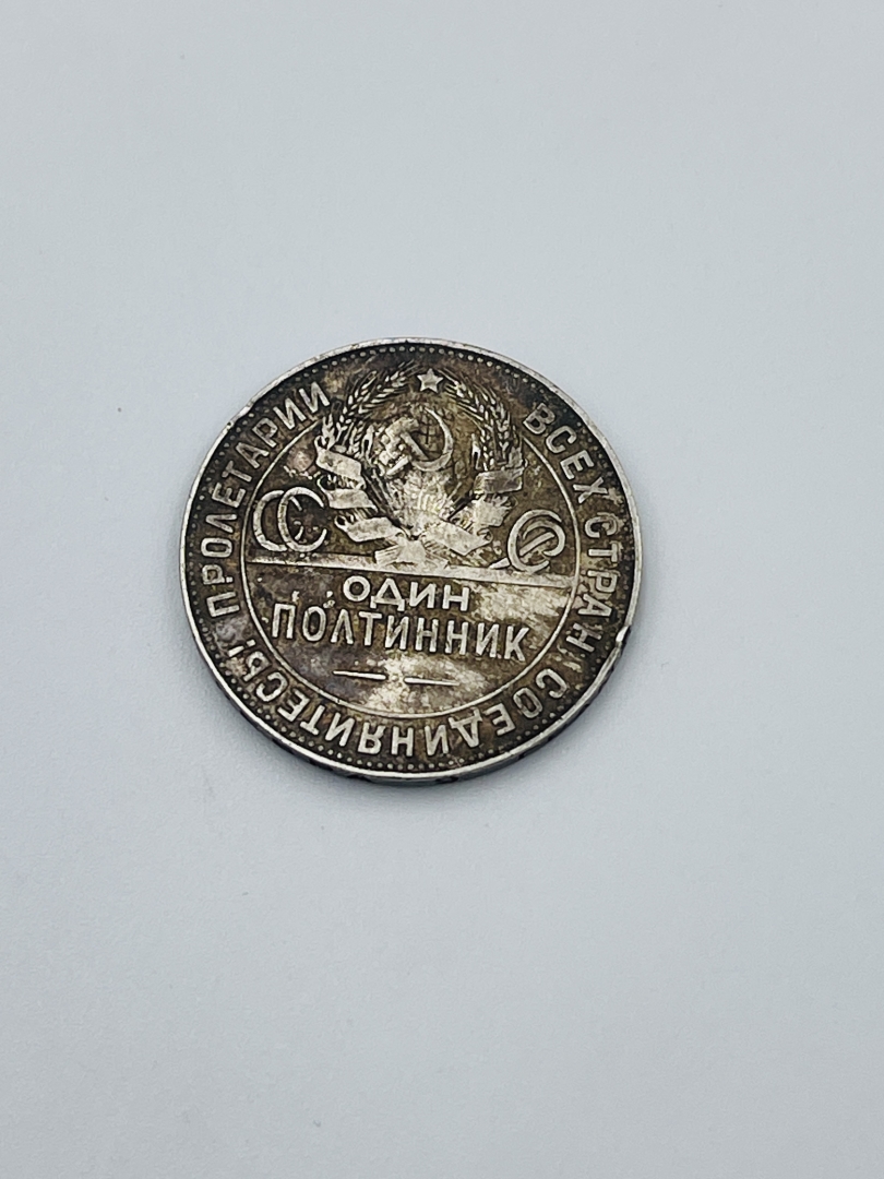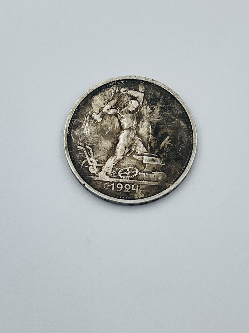 КОМЕНТАР: Є сліди використання,бруд. Проба перевірена реактивами та на пробірному камені . СССР ,1924 року,1 полтинник.