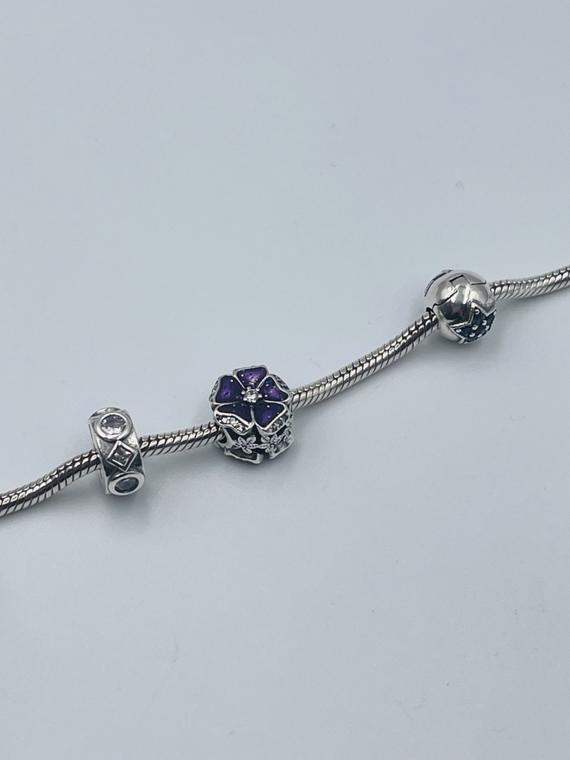 КОМЕНТАР: Вставки:Цирконій куб.- білий,блакитний та синій.Емаль-фіолетова