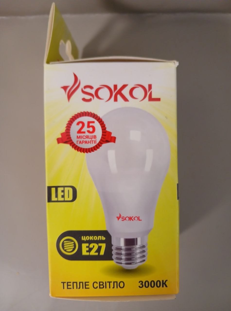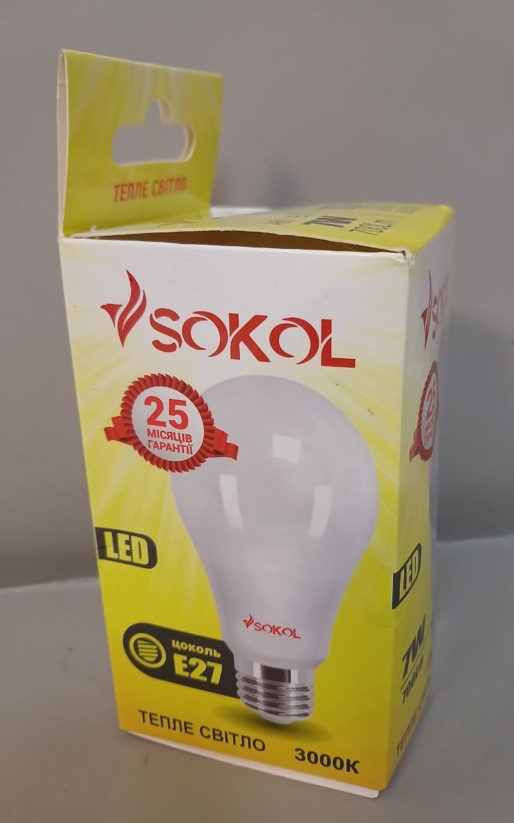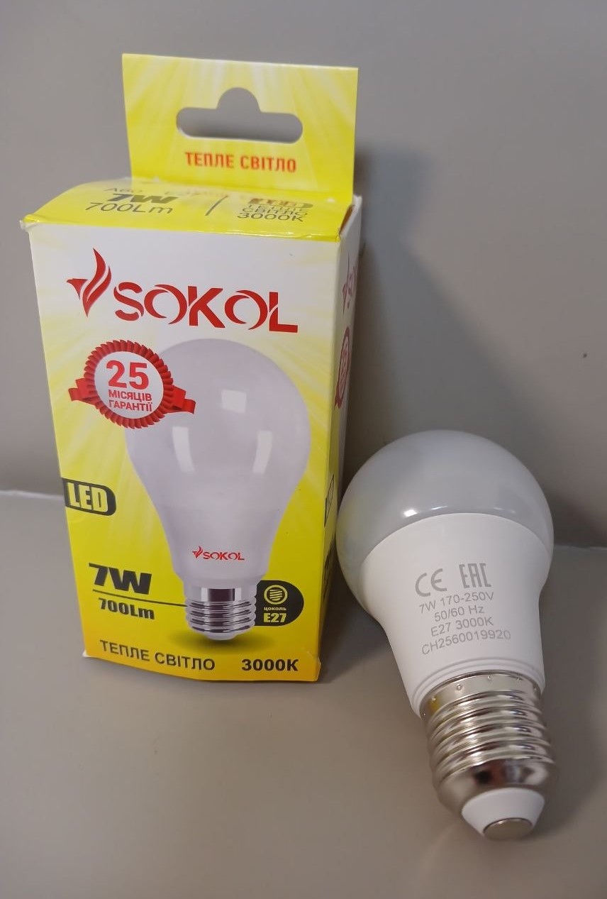 Світлодіодна LED лампа Sokol А60 7W 220В E27 3000К