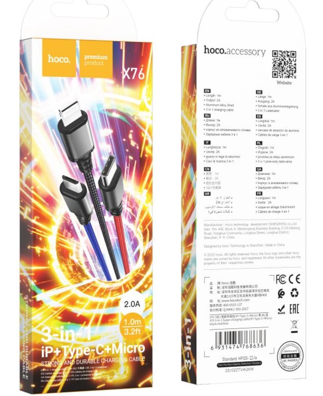 USB Кабель Hoco X76 3 in 1 lighting Type-C Micro 2A