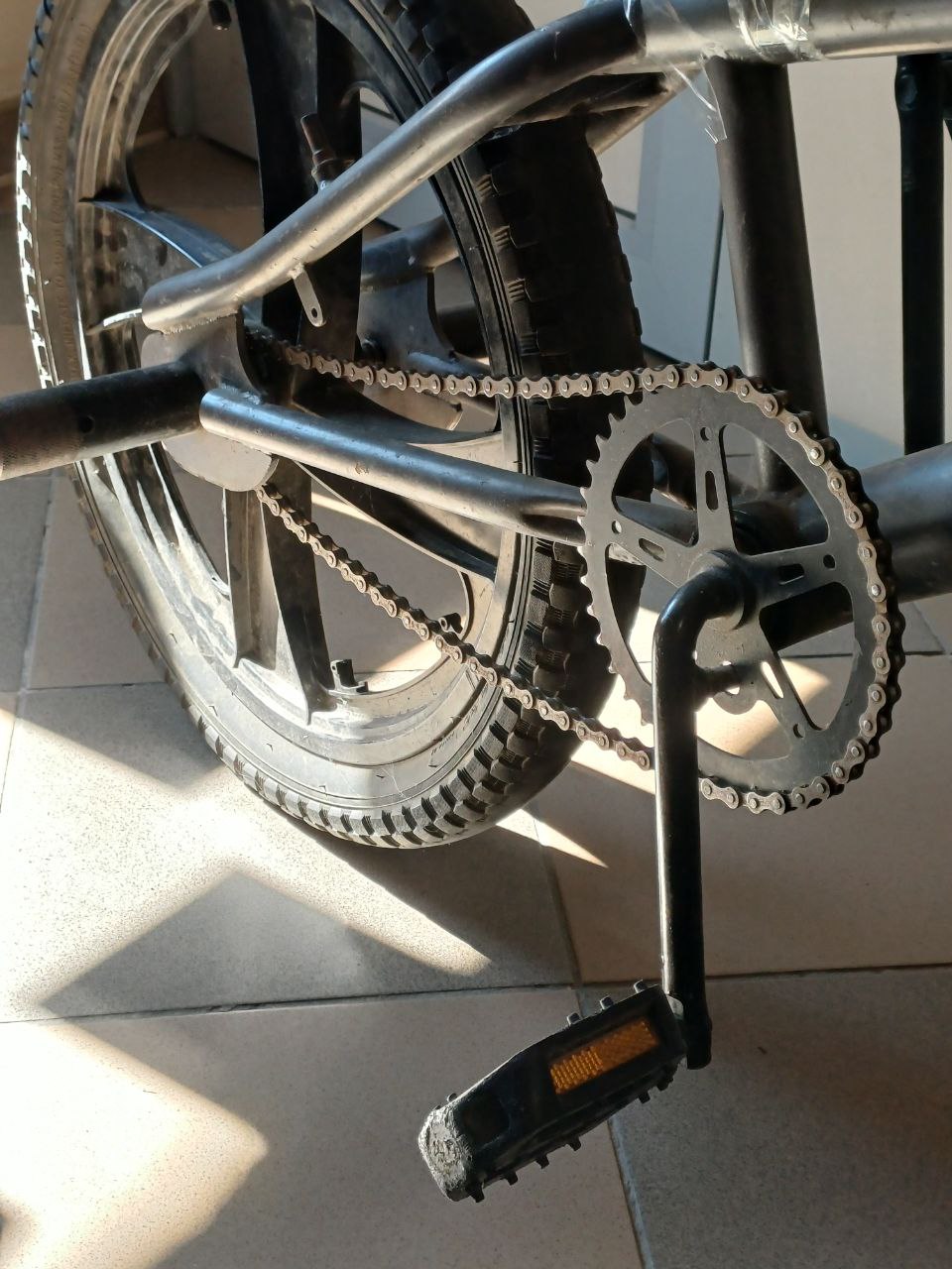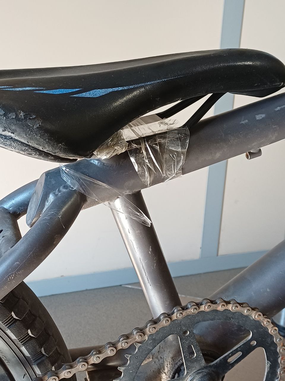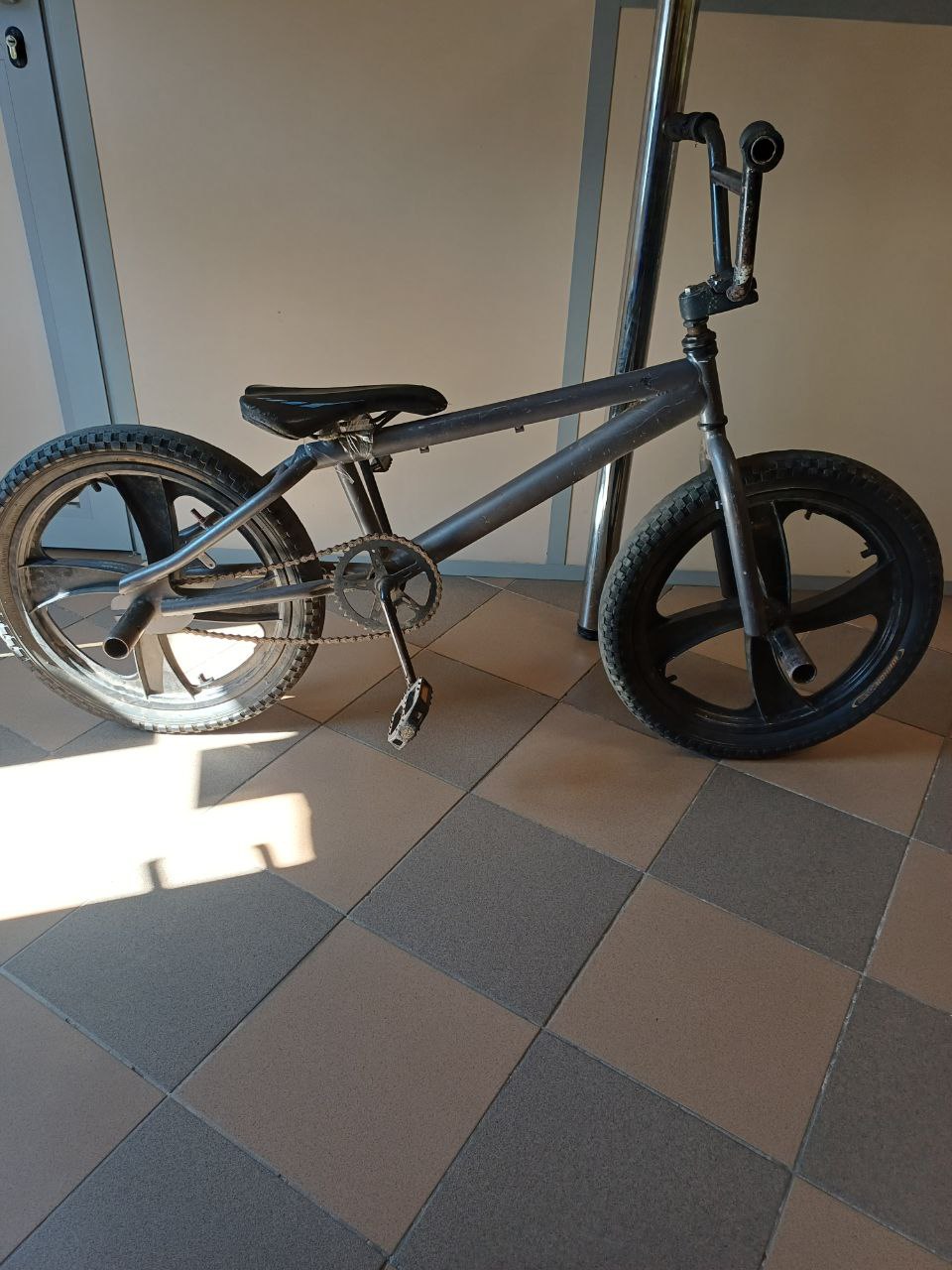 Рама залізо, заднє колесо махається, приспущене, іржа, сидіння примотане скотчем, обдерті ручки.