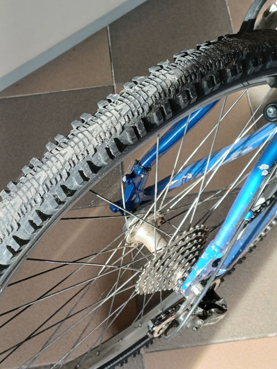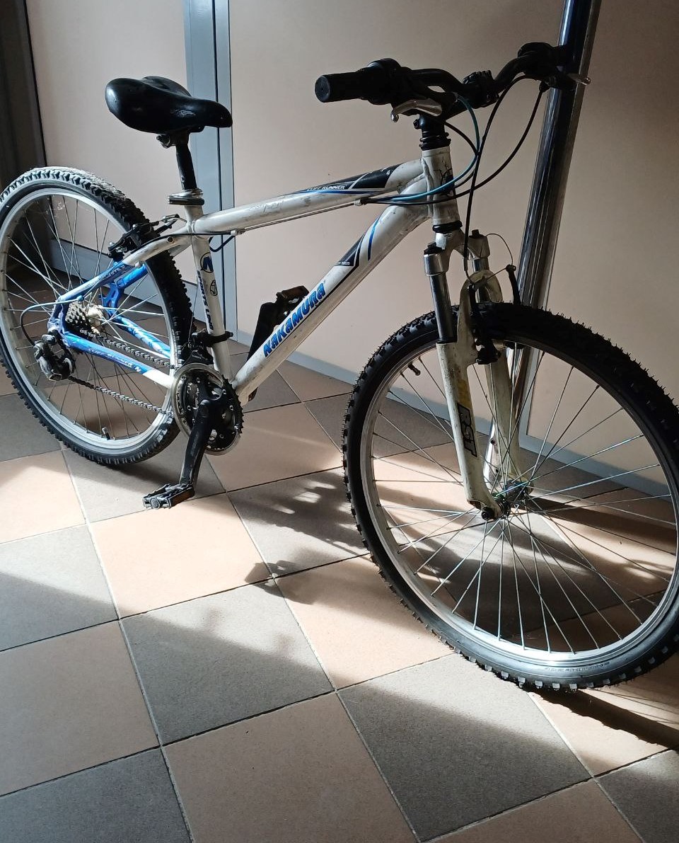 Почуханий, рама алюміній, надірване сидіння, стерта резина на задньому колесі (підспущене). задні гальма не робочі, передачі не перемикаються