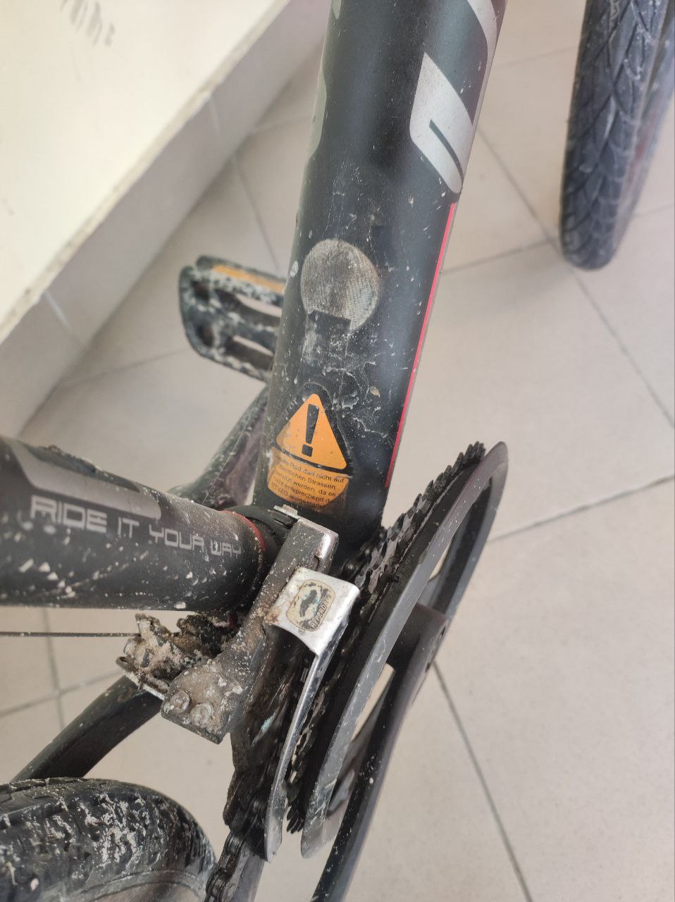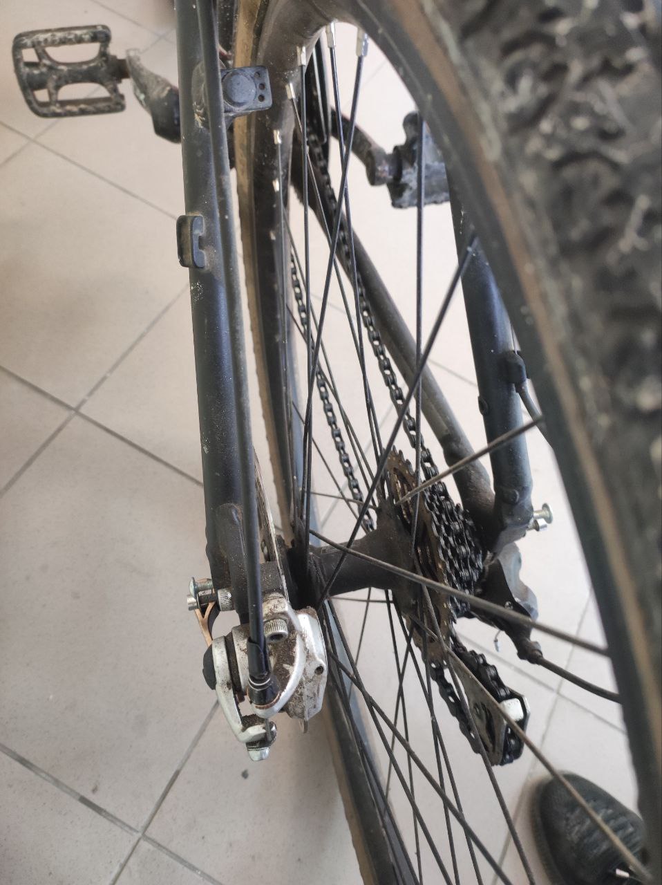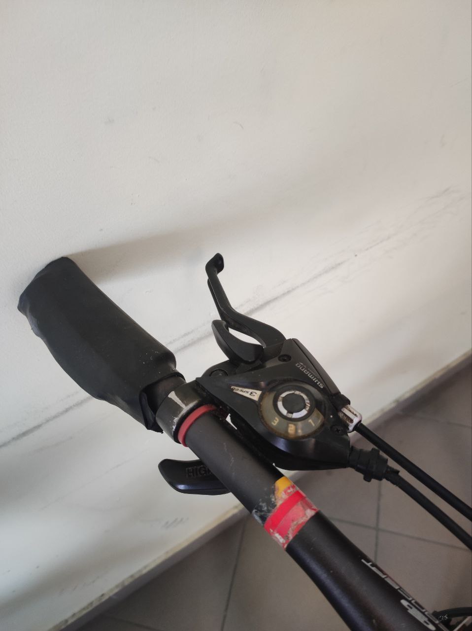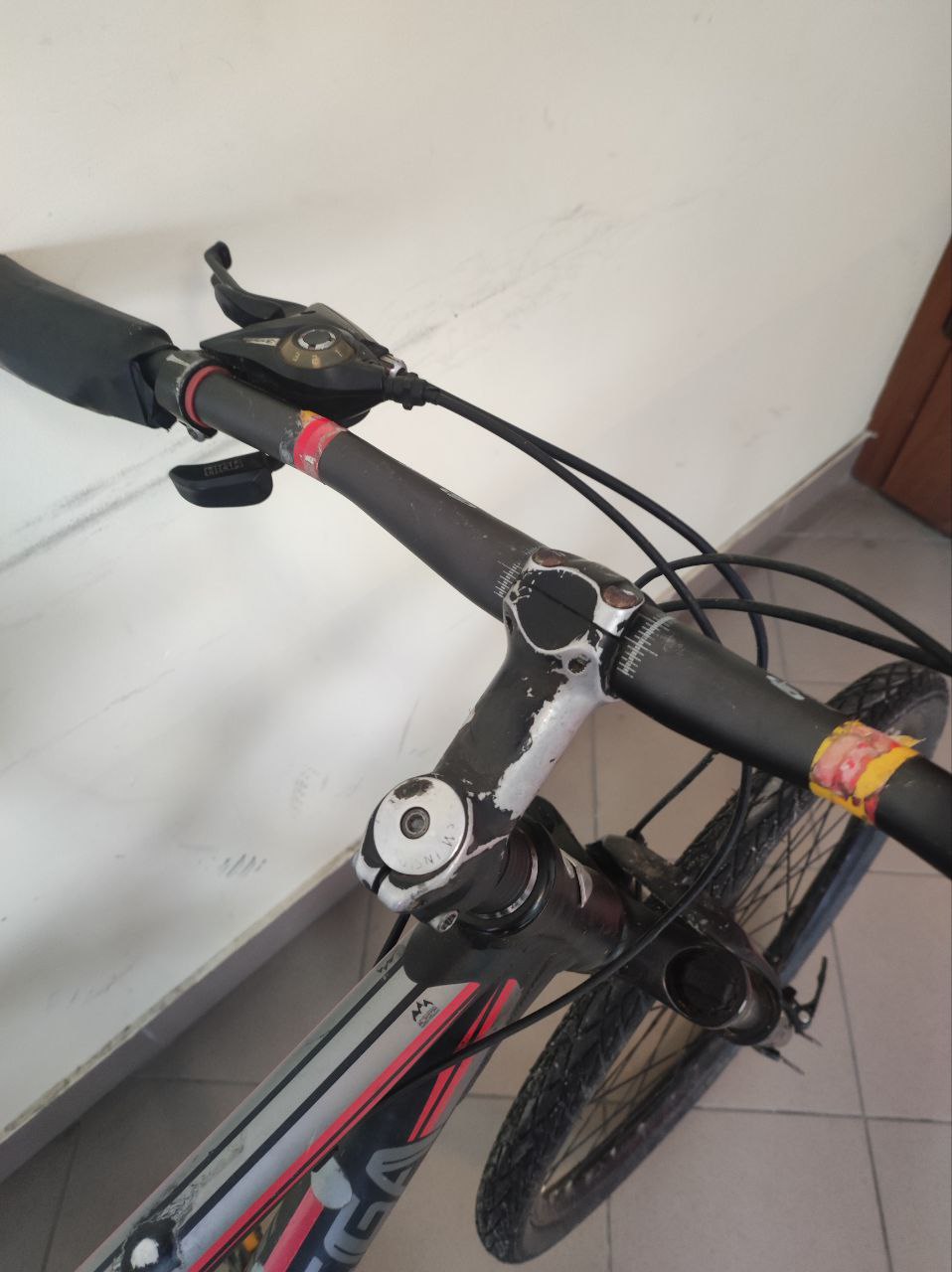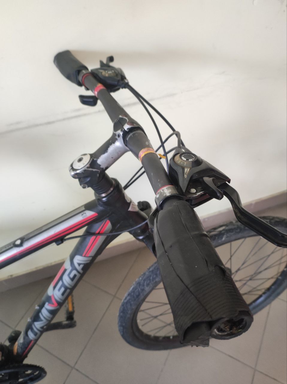 брудний, сколи, перемотані ручки руля ізолентою