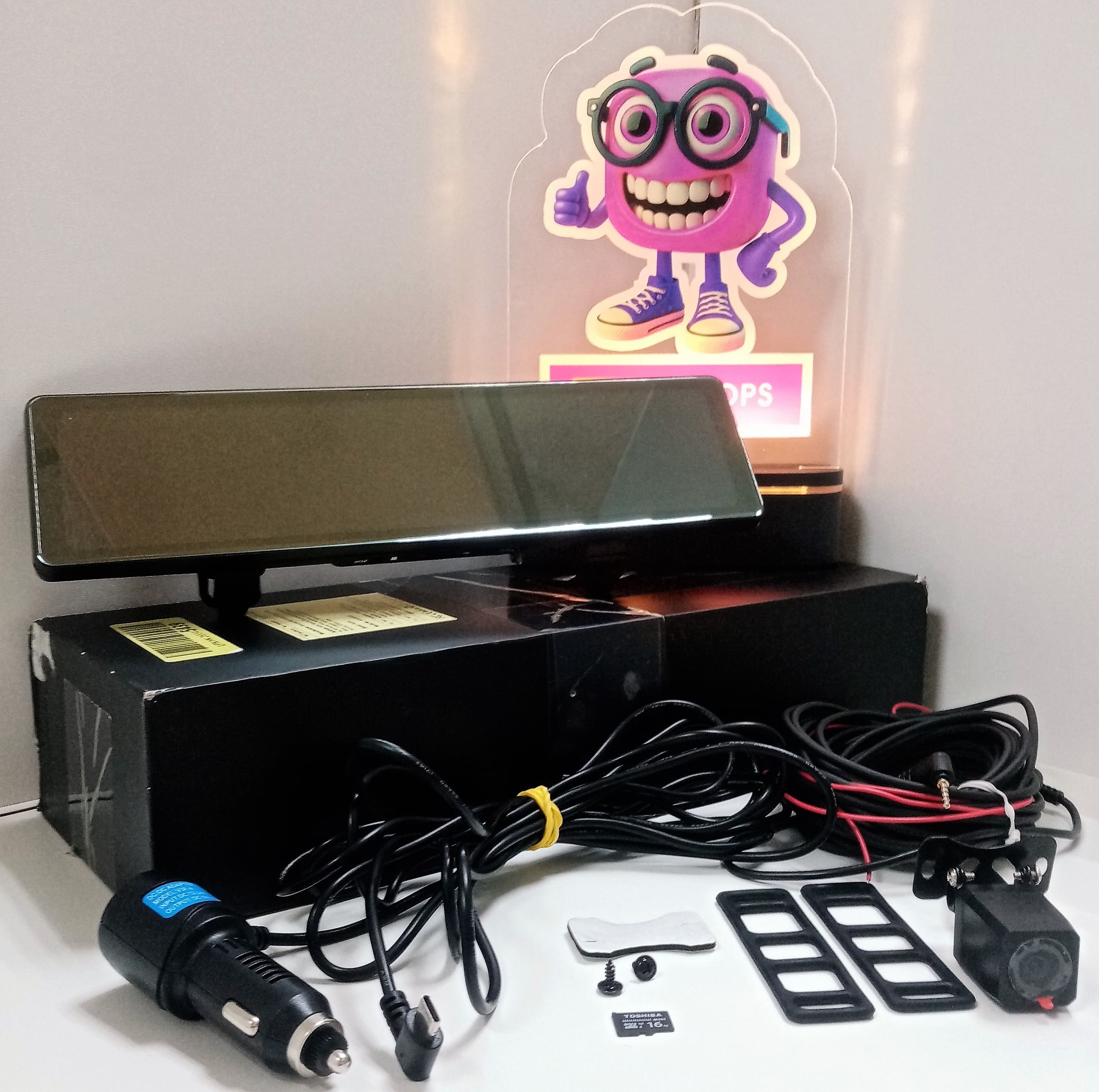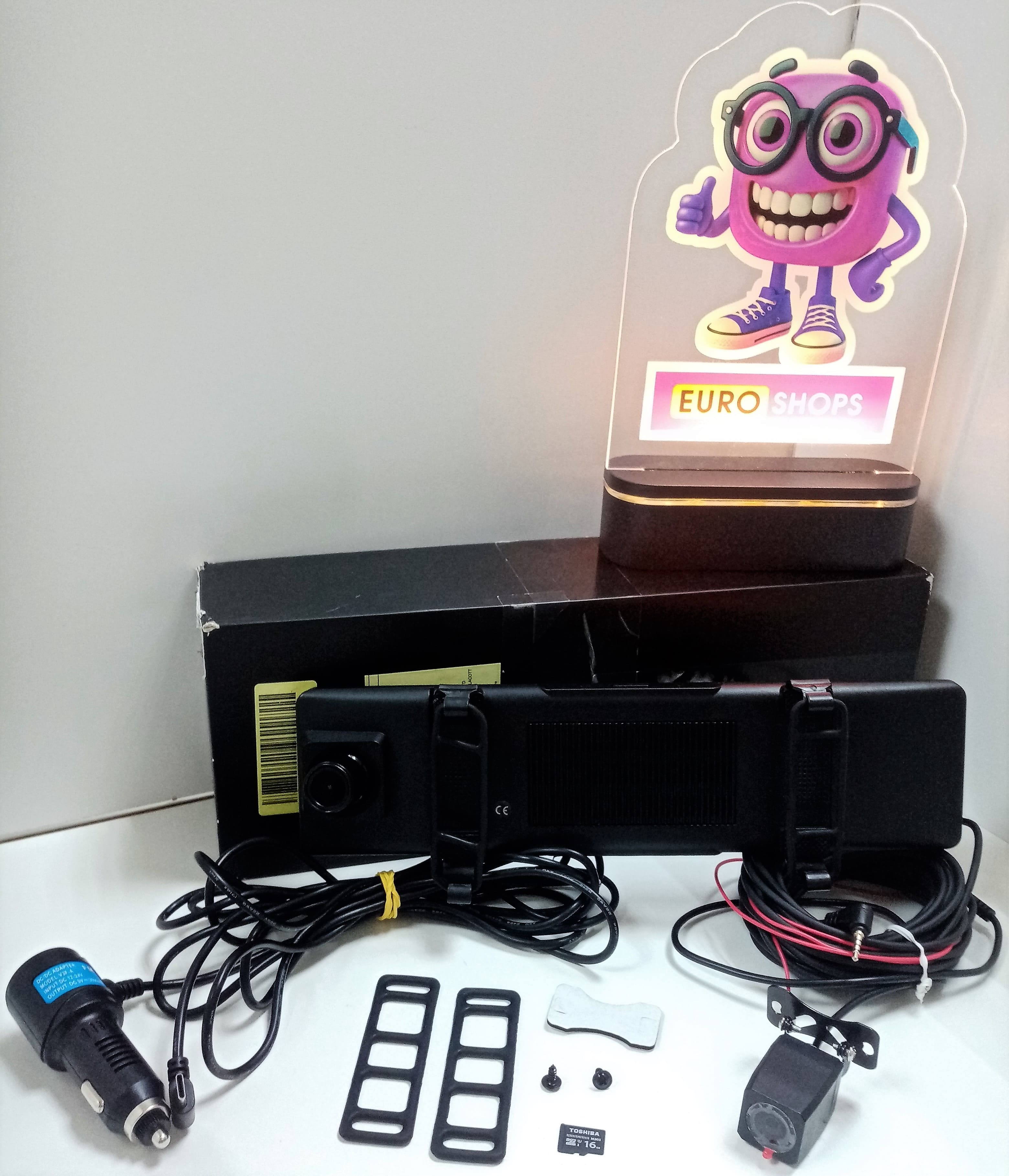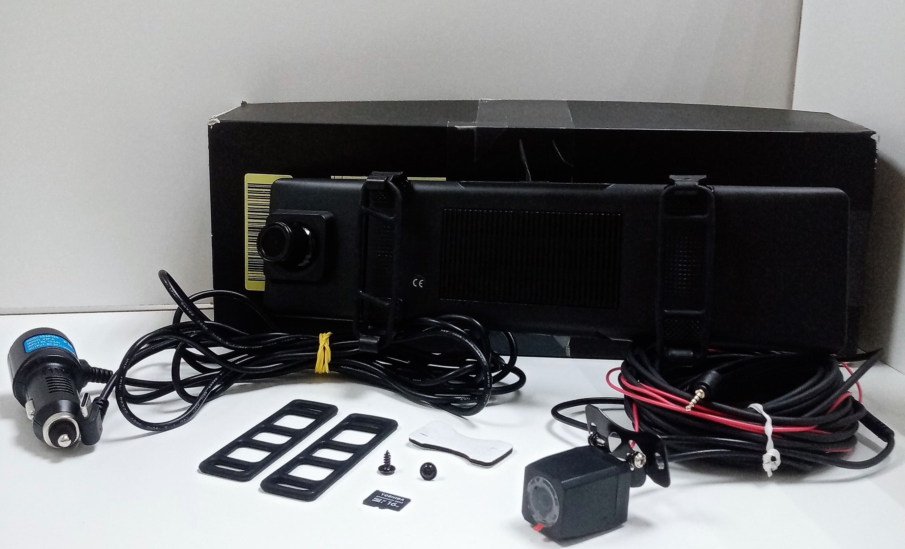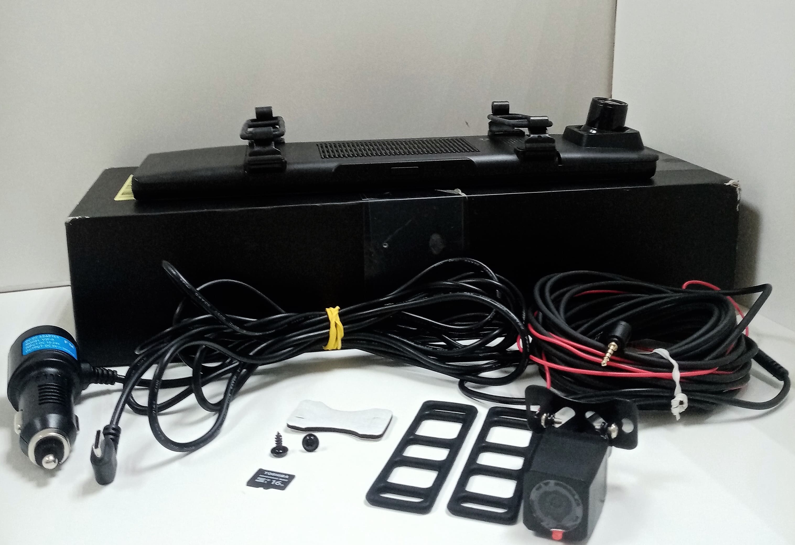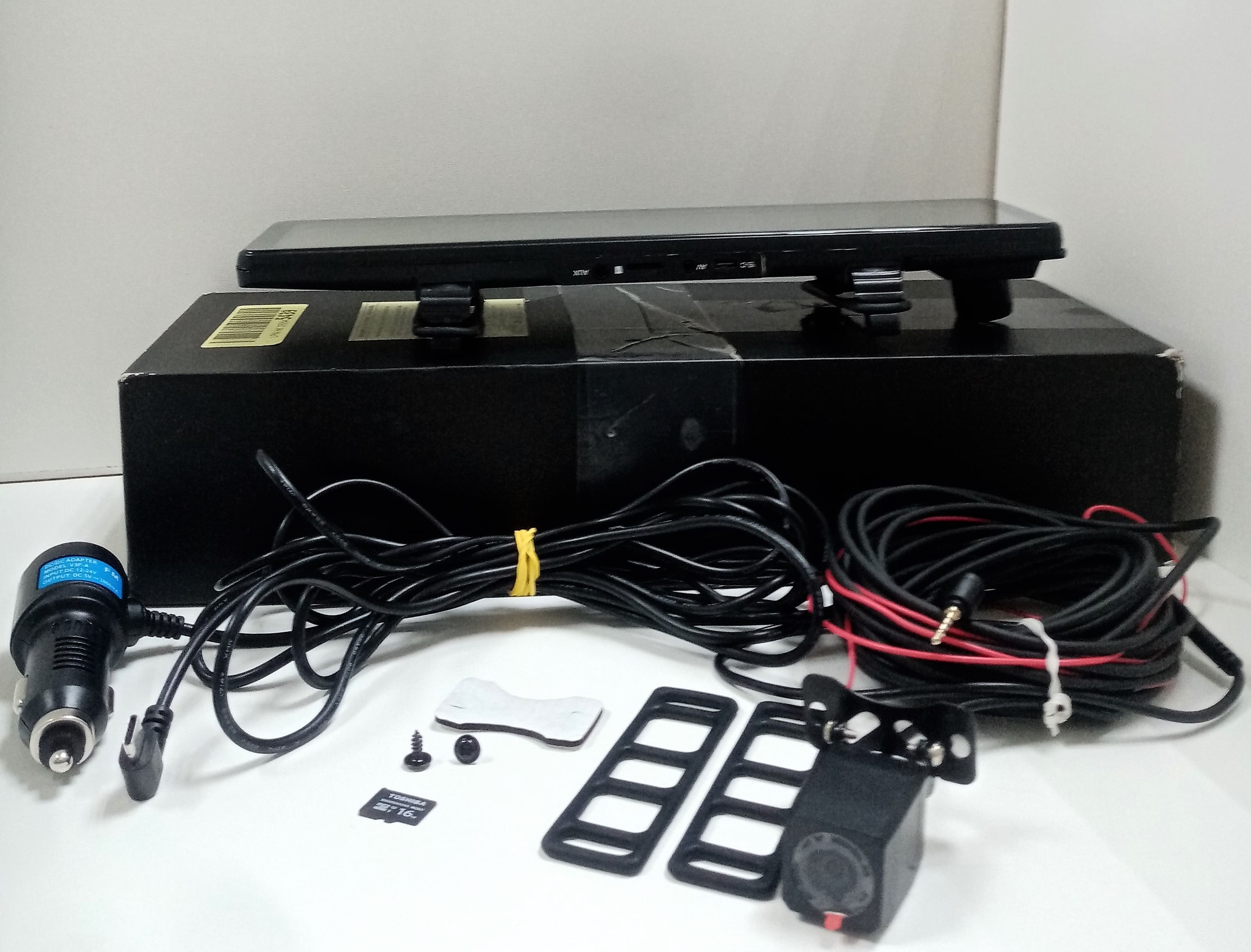 Задовільний стан; сліди використання..Комплектація: Відеореєстратор,Адаптер живлення в прикурювач,Виносна камера з кабелем 6 м,Кріпильні гумки,Кабель USB,Коробка - не від нього. Флешка на 16 Гб.