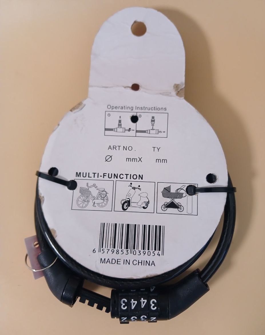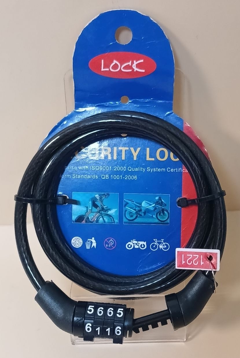Замок велосипедний тросовий кодовий Чорний 1м