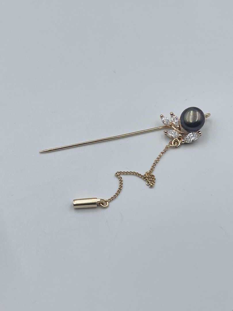 КОМЕНТАР: Вставки:Цирконій куб.-білий.Перлина культ.-чорна. Проба перевірена реактивами та на пробірному камені .