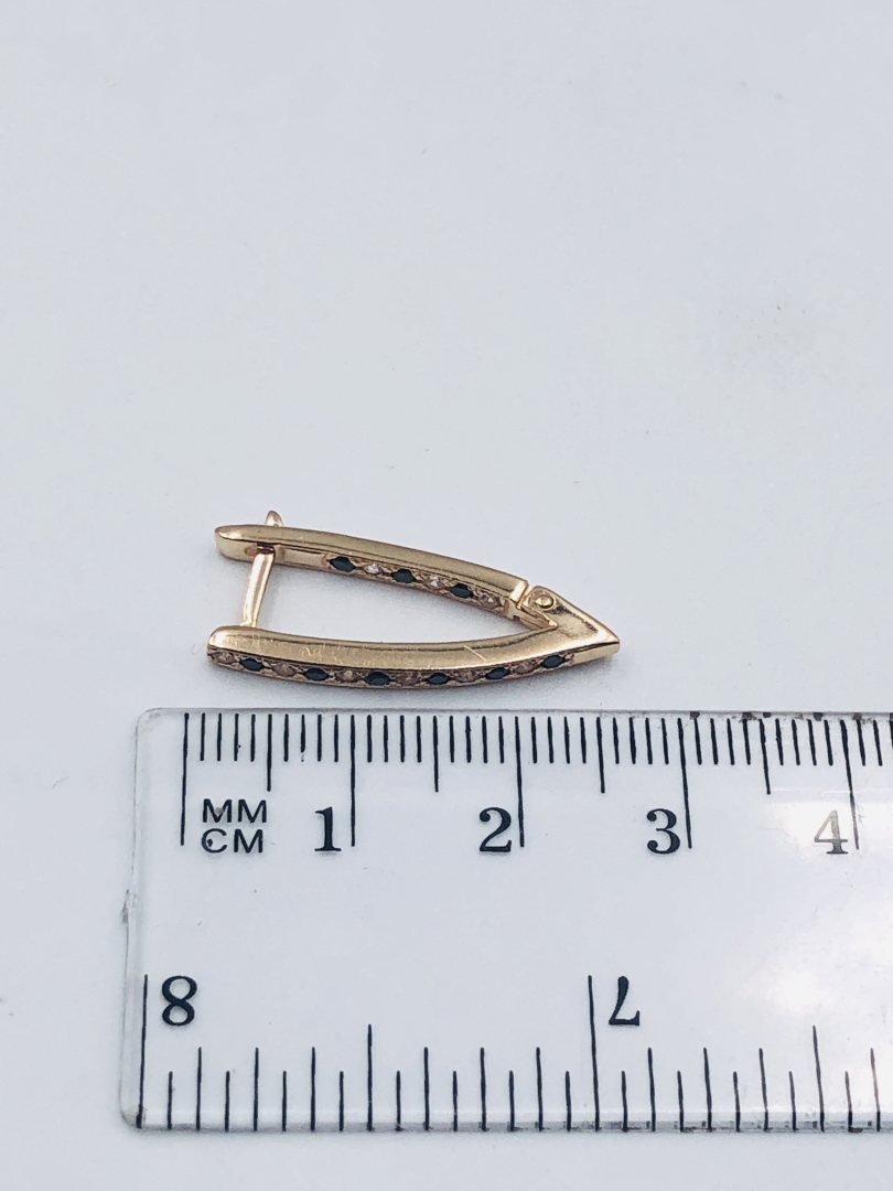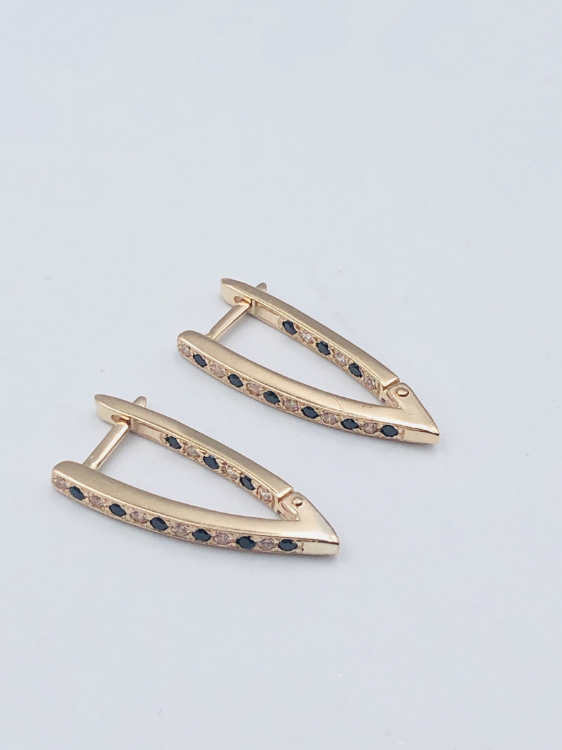 ПРОБА: 585 ВАГА: 3.81 СТАТЬ: Жіночий КОЛІР МЕТАЛУ: Червоне золото ТИП ЗАСТІБКИ: Англійська застібка КЛЕЙМО: ✓ КОМЕНТАР: Вставки:Цирконій куб.-білий та чорний ОПИС ВСТАВКИ: Цирконій
