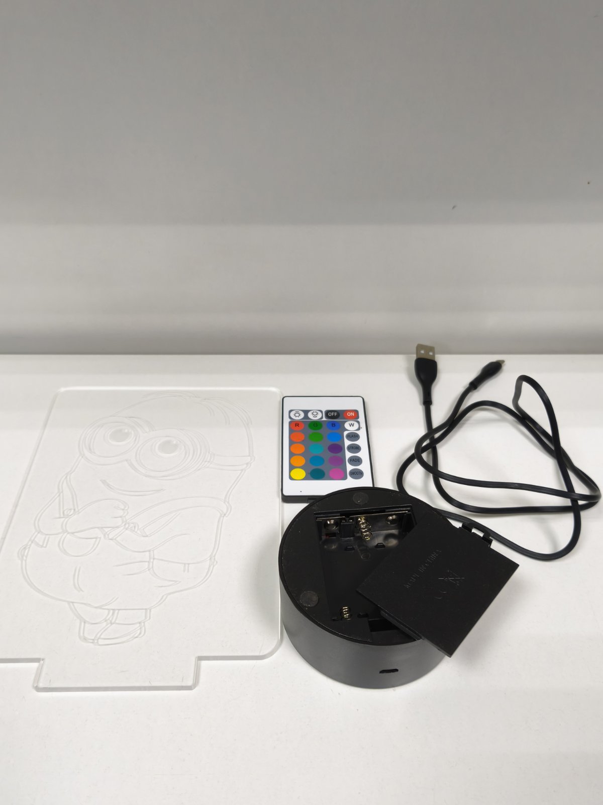 Акрилова пластина, підставка, пульт, USB-кабель.