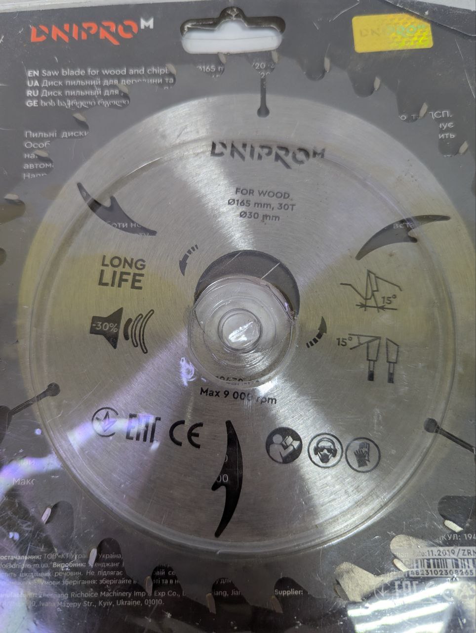 Диск пильний Dnipro-M 165mm.30T 30mm @