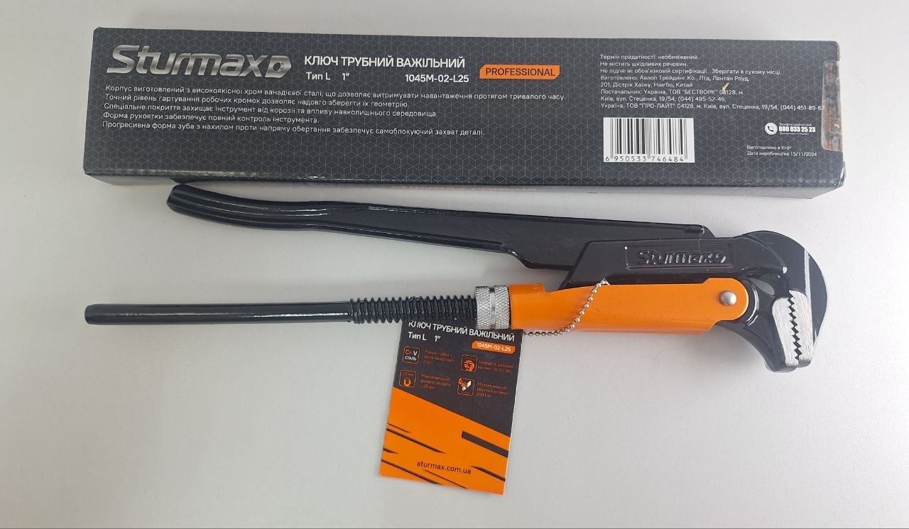 Ключ трубний важільний STURMAX CR-V ТИП "L" 25 мм