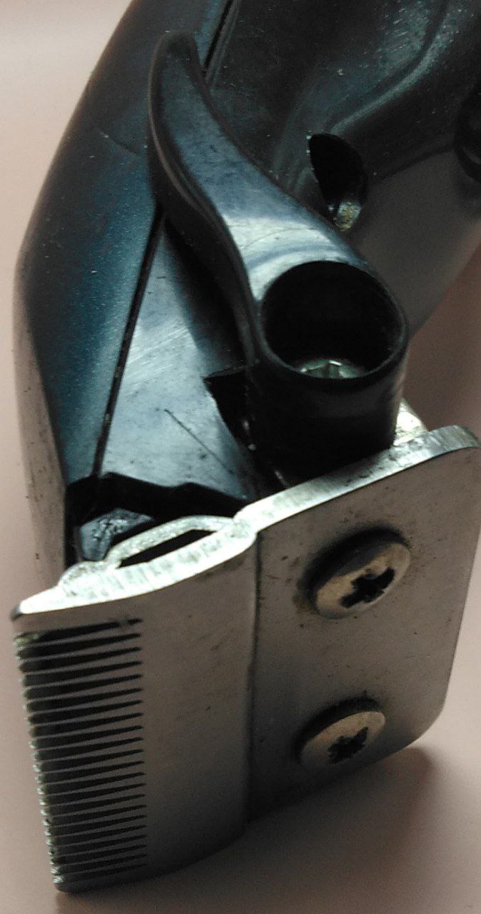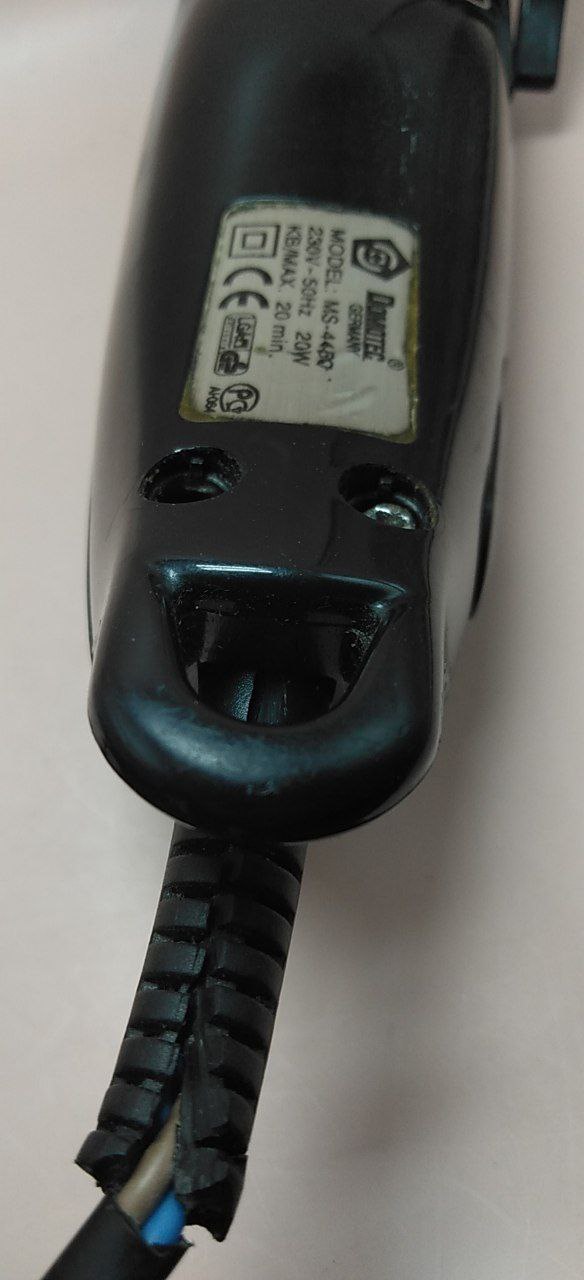 Сліди тривалого активного використання,бруд,нехарактерний звук бряжчання при вмиканні,тупі леза,оголений кабель