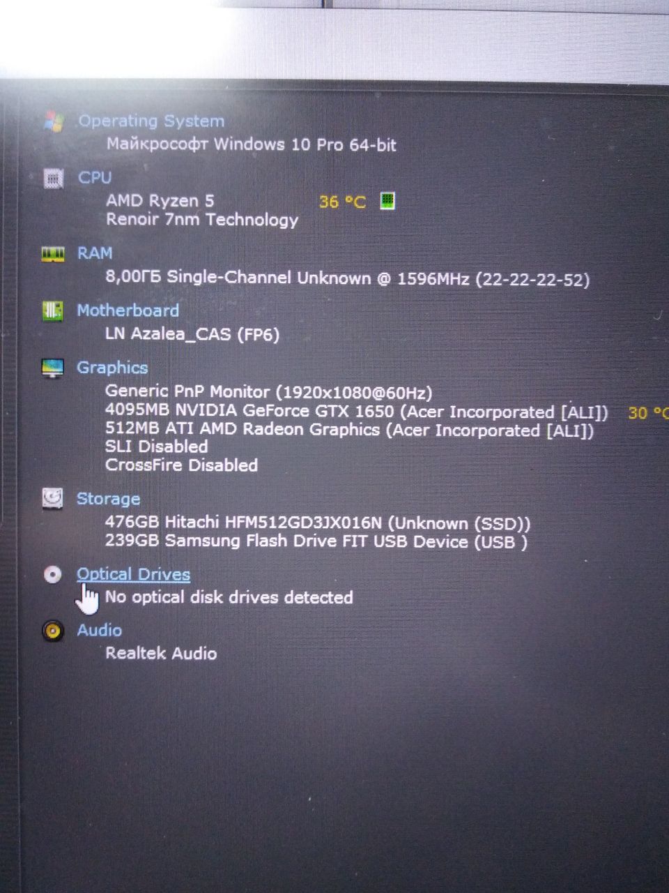 Ноутбук Acer N19C5 Ryzen 5 5500U/RAM24GB/SSD512GB/GeForce GTX 1650