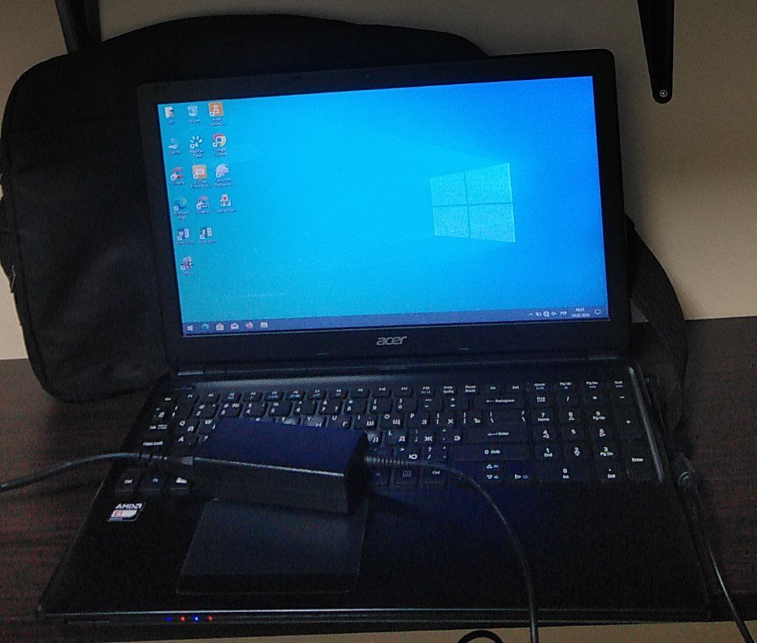 Сліди тривалого користування,бруд,подряпини,на екрані з'являються білі полоси вздовж екрану,пошкодження на корпусі,відломаний шматок пластику,сліди розбору,не вистачає гвинтів,працює від мережі,сумка брудна