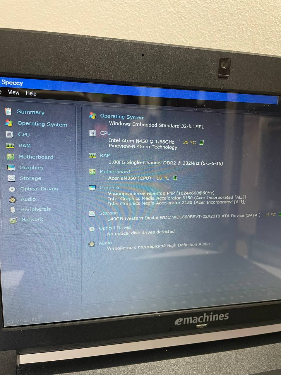 Ноутбук Acer eMachines eM350 Atom N450/RAM1GB/HDD160GB