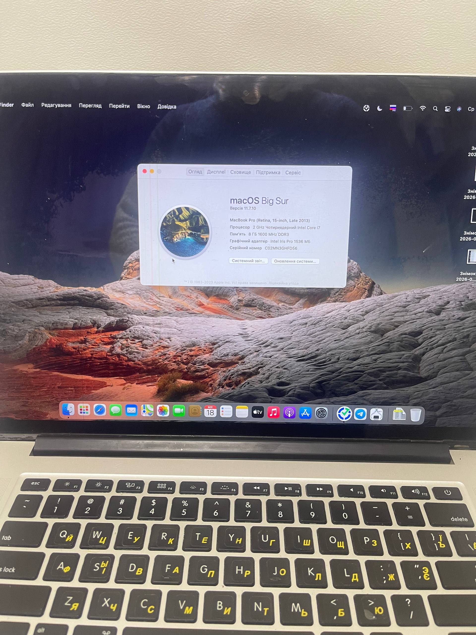 Ноутбук APPLE MacBook Pro (Retina,15-inch,Late 2013) A1398 Core i7/RAM8GB/SSD256GB
