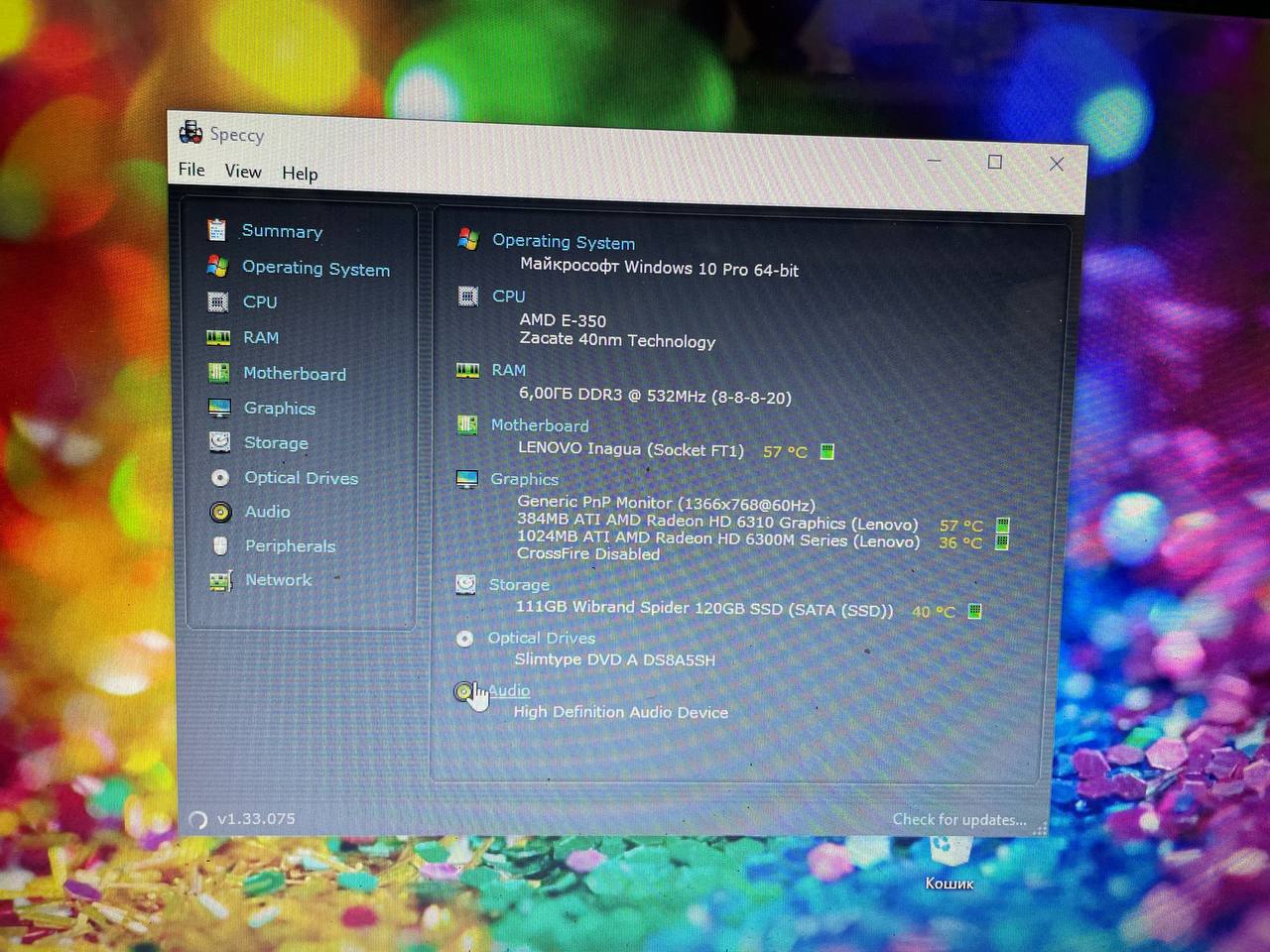 Ноутбук Lenovo G575 AMD E350/RAM6GB/SSD120GB/Radeon HD6300M