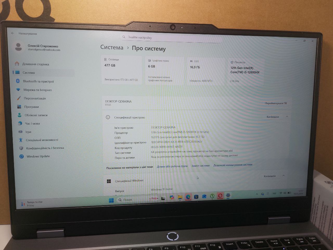 Ноутбук Lenovo LOQ15IAX9 83GS00MDRA Core i5-12600HX/RAM16GB/SSD512GB/GeForce RTX4050
