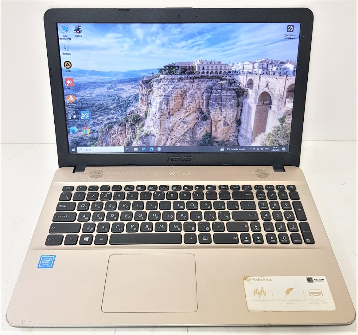 стан задовільний, погано працює тaчпад, з/п перемотаний ізолентой/CPU: Intel Celeron№ 3350,1.10GHz,RAM: 4Gb,Graphics: Intel Graphics HD500,Storage: 465Gb