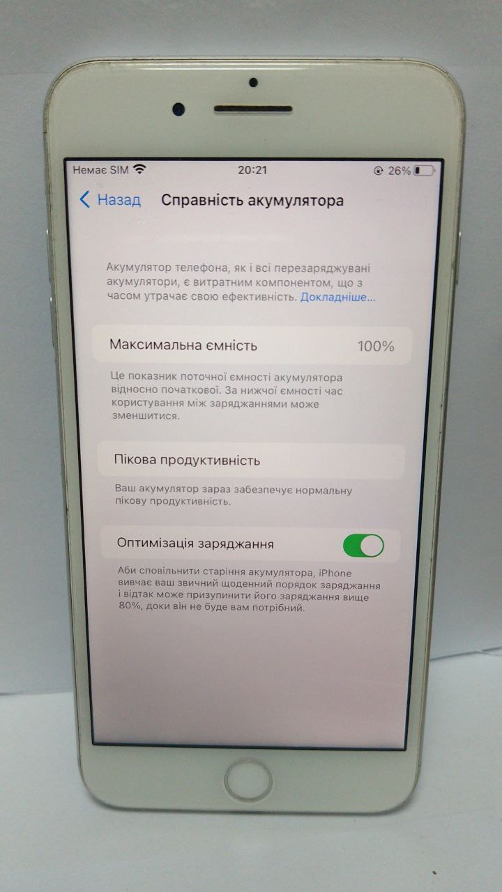 1 засвіт на екрані, батарея 100%