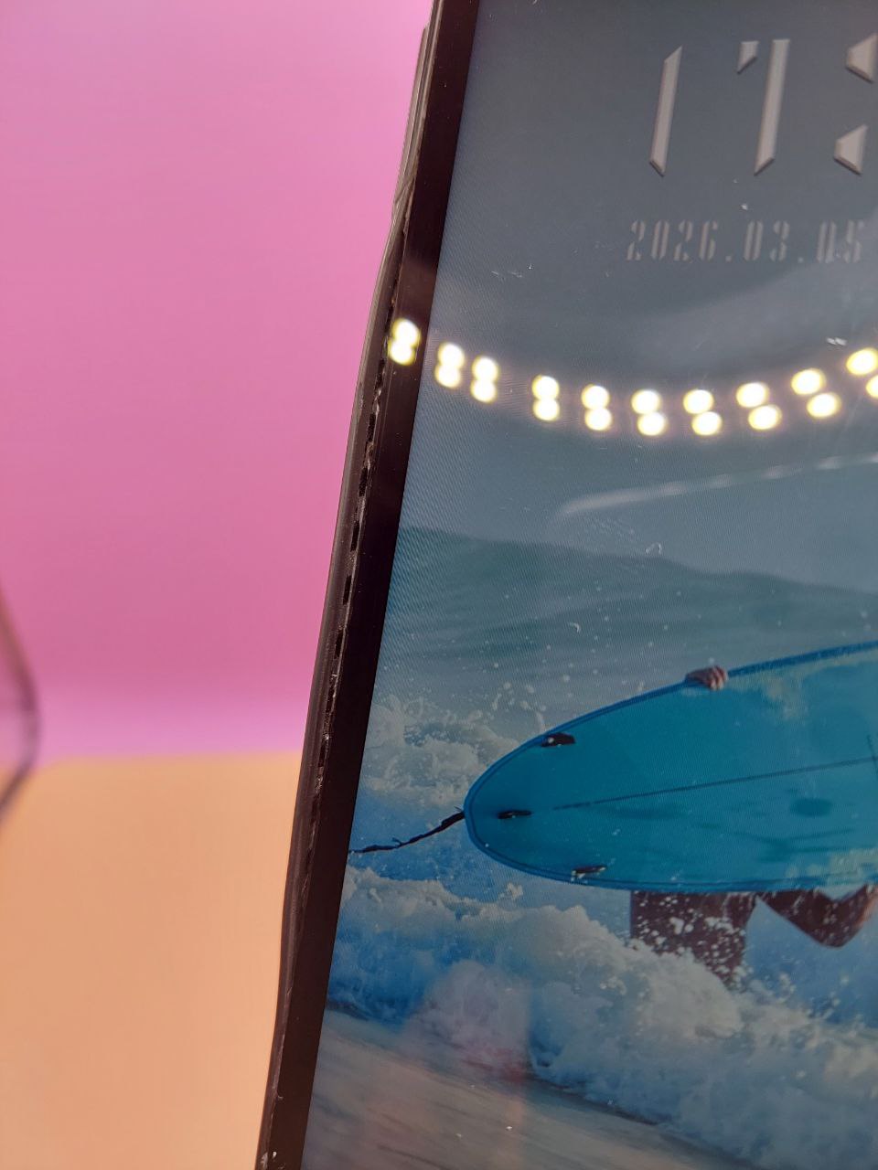 дрібні подряпини по екрану, зверху під екраном повітря, пошарпаний корпус, відстає ущільнювач з лівої сторони екрану, края жовтуваті