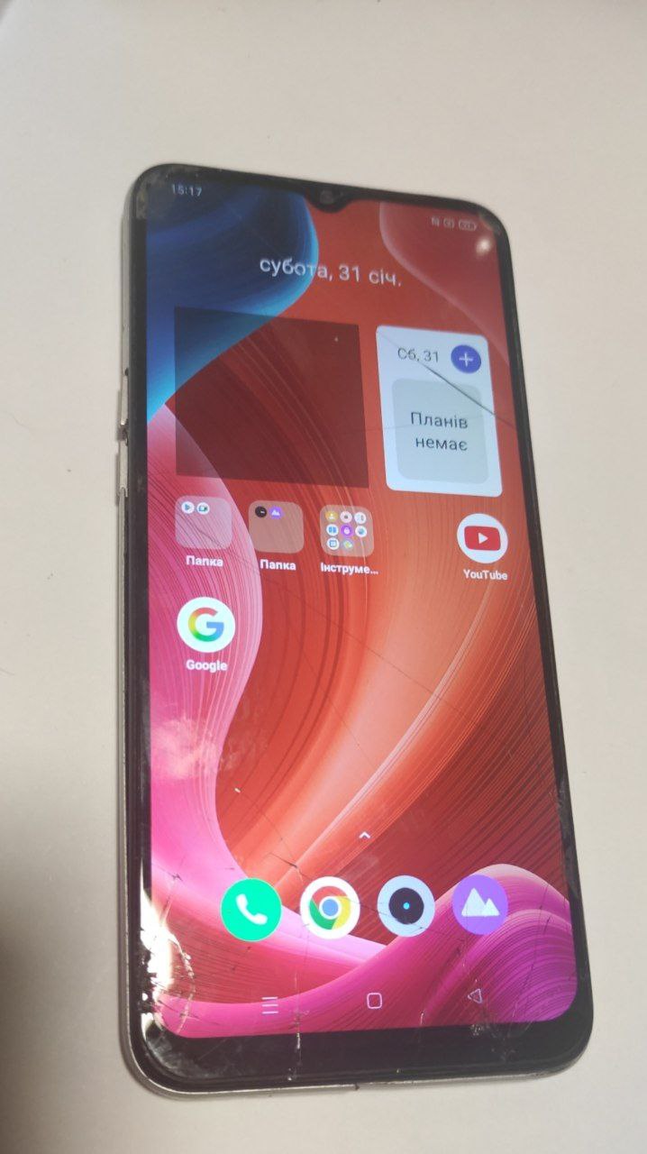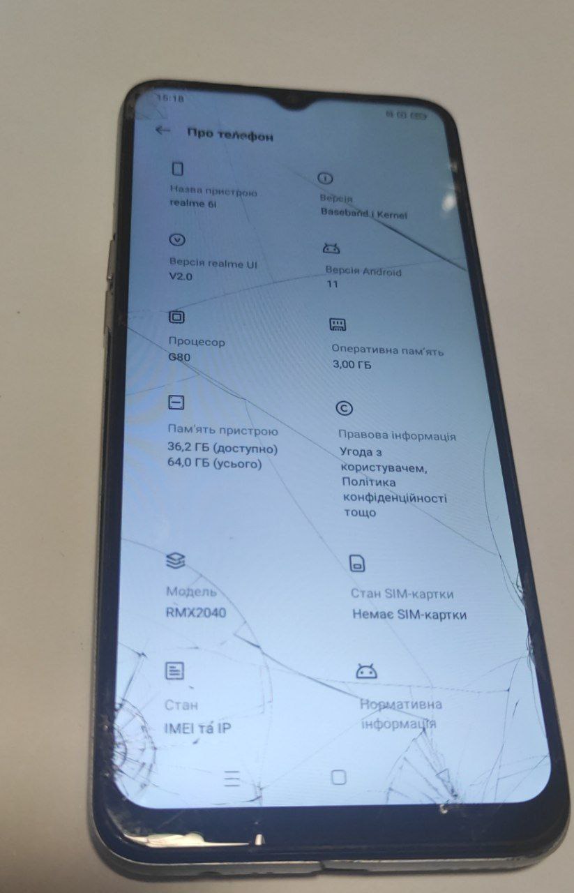 Задовільний стан; побитий екран, пошкоджений корпус , екран відходить від корпусу