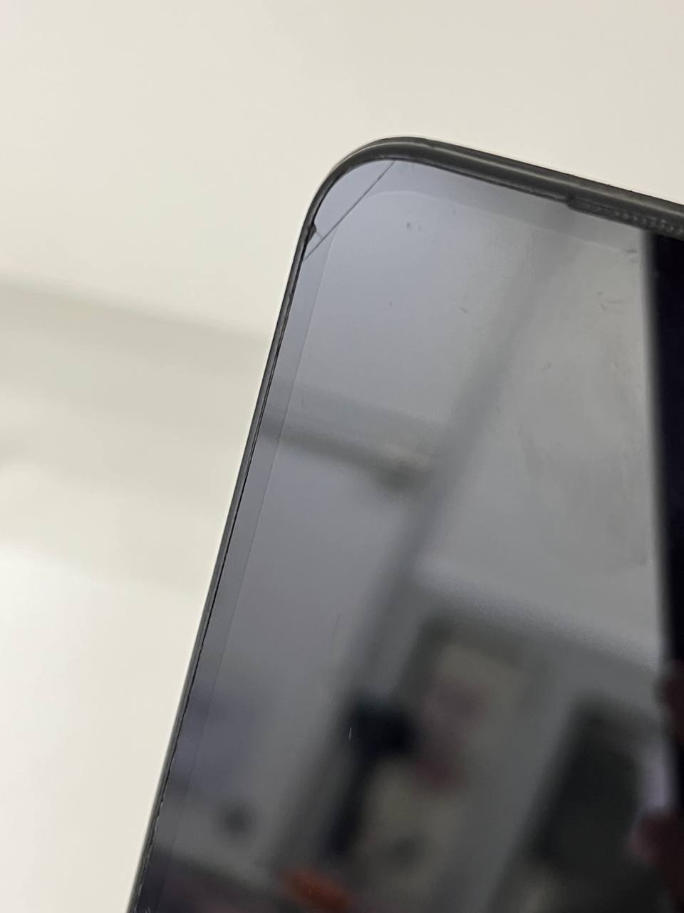 тріщина на екрані зверху збоку, по центру екрана глибока царапина, на екрані по ободку "засвіт"