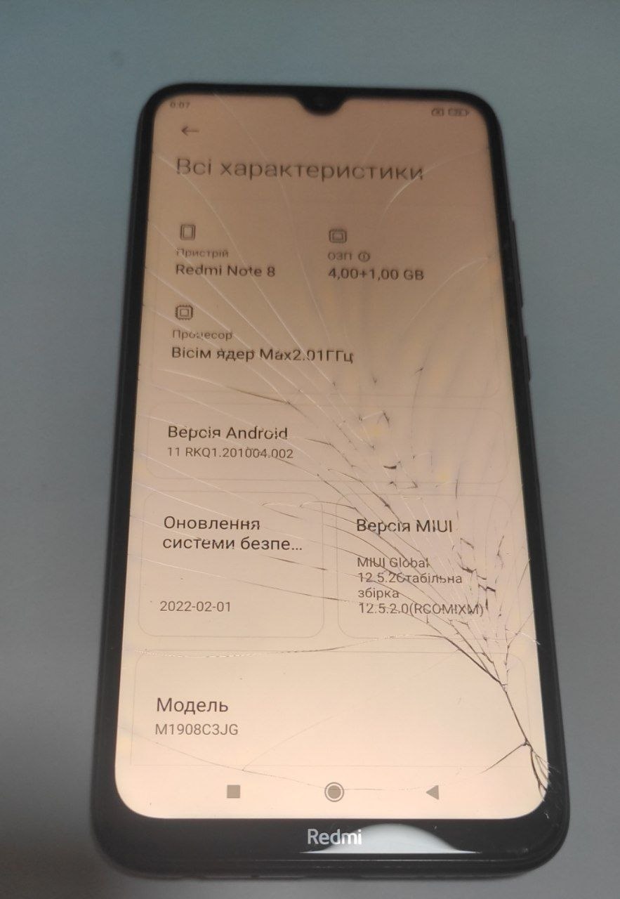 Тріщини на екрані з жовтими плямами, підтуплює сенсор, тріщини на склі камери , слабка батарея