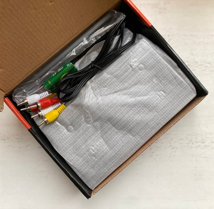 Коробка; інструкція; пульт; 2 батарейки; AV-кабель