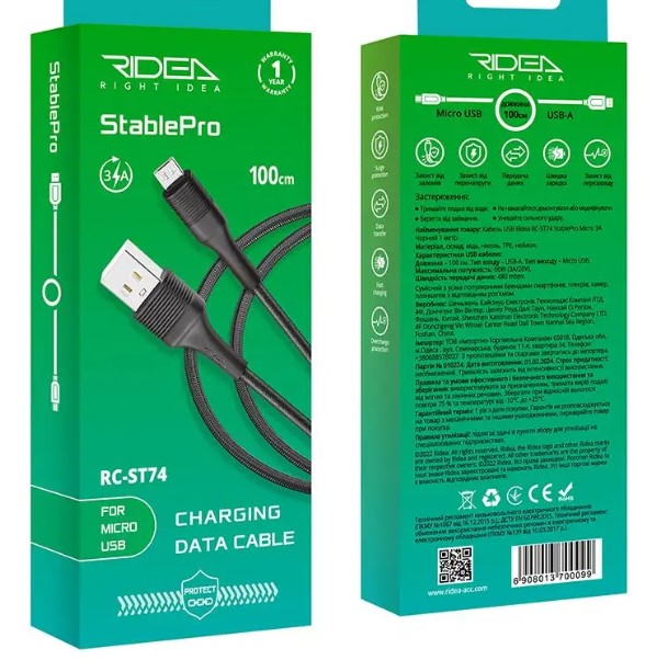 USB Кабель Ridea RC-ST74 StablePro Micro 3A Чорний