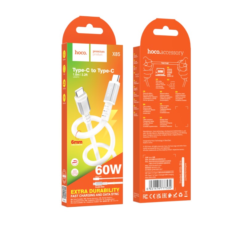 USB Кабель Type-C to Type-C Hoco X85 60W Білий