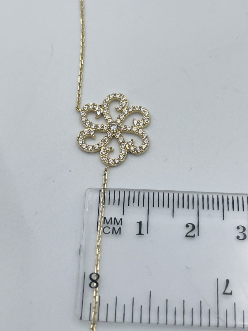 ПРОБА: 583 ВАГА: 3 СТАТЬ: Жіночий РОЗМІР: 40 КОЛІР МЕТАЛУ: Жовте золото ТИП ЗАСТІБКИ: Шпігельний замок (кільце) ПЛЕТІННЯ: Якірне КОМЕНТАР: Проба перевірена реактивами та на пробірному камені. ОПИС ВСТАВКИ: Цирконій